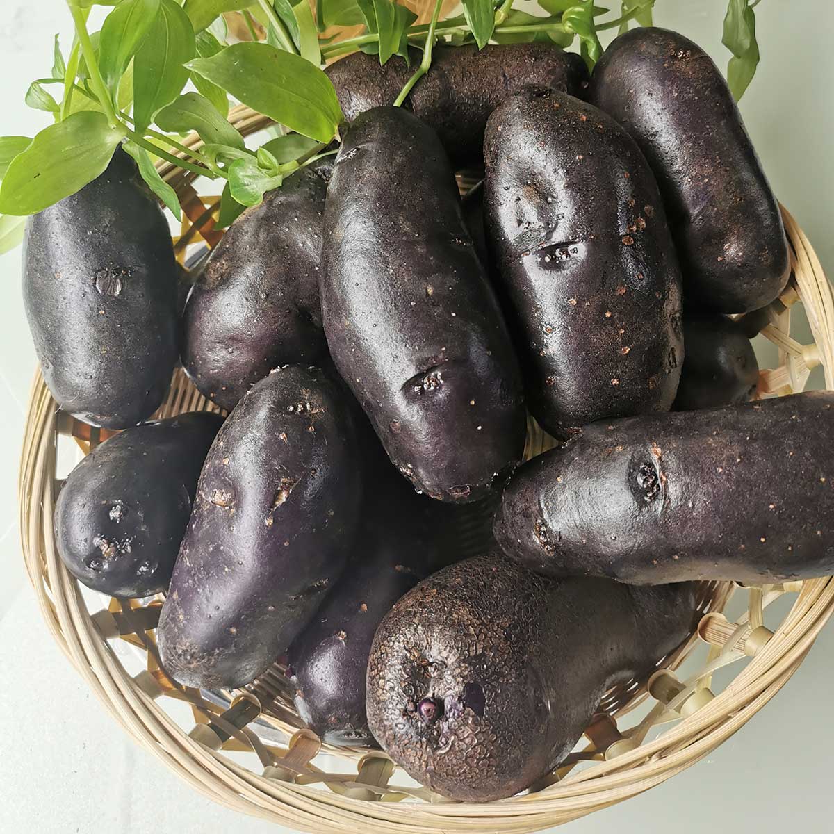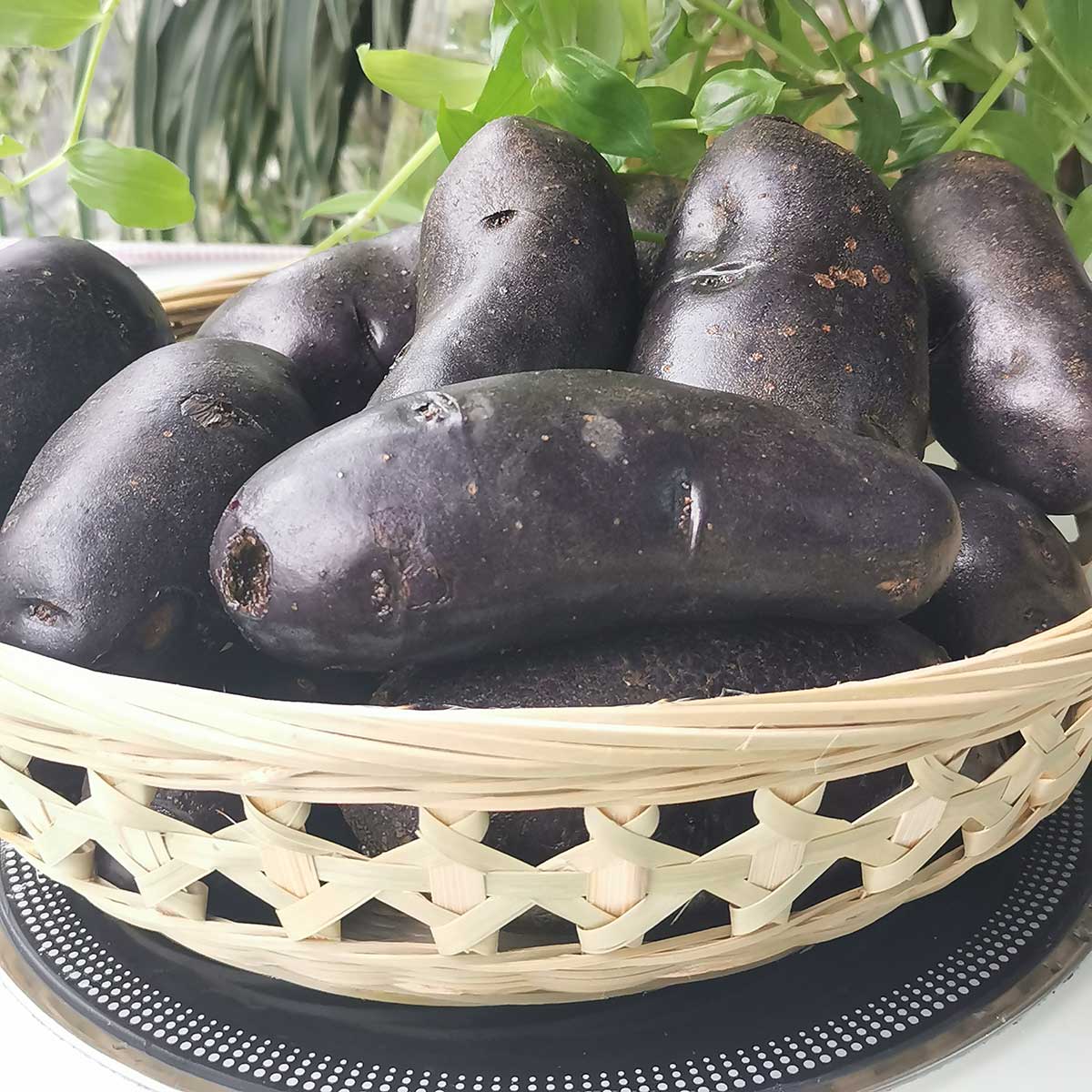 黑土豆呈椭圆形,外表和红薯有点像,但不是红薯,与黄土豆相比,它的芽眼比较小。黑土豆,顾名思义,其外表呈黑紫色,果皮有乌黑有光泽,果肉也呈黑紫色,与一般土豆相比,它的外表诱惑力强,而且其中的营养价值很丰富,尤其是其所含的淀粉物质较高,是属于上好的土豆品类。